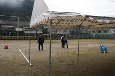 閉校式典に向けて、明日(2月14日)リース業者の方が学校に来て、体育館に700脚程度のイスを並べます。そこで今日の午後は、体育館の準備や受付用のテントの設置、運動場周辺の片付けを行いました。小学生も中学生もよく作業に取り組んでいました。