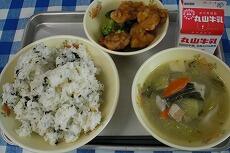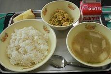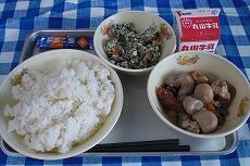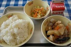 【献立】麦ご飯 鶏肉とごぼうの揚げ煮
