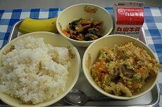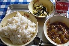 【献立】麦ご飯 厚揚げのピリ辛炒め