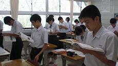 西門川中の今年のキーワードは「挑戦と変革」です。子どもたちは漢検や英検に挑戦しています。今日は全校生徒が「硬筆検定」を受検しました。仕事などではワープロソフトを使って文書を作ることが多くありますが、手紙やはがきを書いたり、テストを受けるときは手書きです。文字を正確に丁寧に書くことは社会人としても大切な要素です。硬筆検定をきっかけにして、子どもたちが読みやすくていねいな文字を書くことを期待しています。