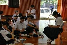 西門川中では生徒の自律を願い、「家庭学習の指導」に力を入れています。宮崎県内では、家庭学習のことを「宅習」と呼んでいて、今日は「宅習集会」を行い、自分がしている宅習の内容や方法を各教科の代表生徒が発表しました。