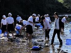西門川中学校は「ホタル再生プロジェクト」に取り組んでいます。今日は門川町役場環境水道課や日向保健所に講師をお願いして「水辺の環境調査」を行いました。