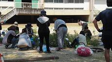 午後は花壇やプランターに植えてあった春の花を抜き、夏の花を植える準備をしました。昨年と比べると子どもたちの人数が11名少なくなったためか、1時間では満足のいく活動とはなりませんでしたが、なんとか予定していた作業を終えることができました。