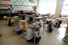 今日は県下一斉に行う「みやざきシェークアウト」訓練があり、西門川中学校も参加しました。