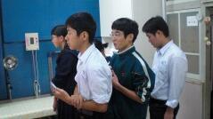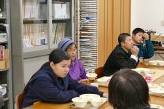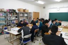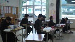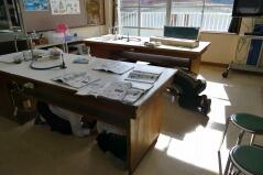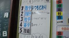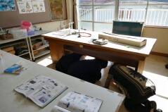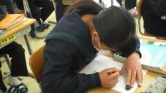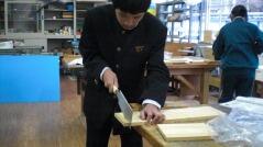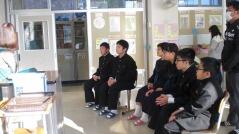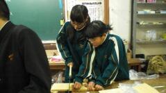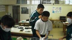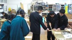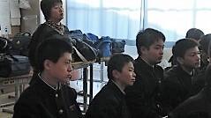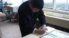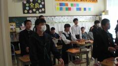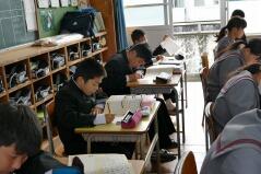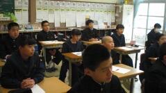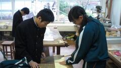 今日はその寒い一日の午後(5・6校時)、一年生は寒い技術室で授業を受け、けがきやのこぎり引きびきなどの作業を2時間近く、行いました。授業の後半、早く終わった生徒は他の生徒の手伝いをしたり、床を掃いたりしていました。