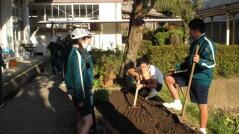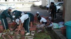 今日は全校生徒で花壇の整備を行う「花壇学習」でした。今日の作業は1学期に植えたマリーゴールドやサルビアなどを抜き、土を耕し新しい苗を植える準備をしました。サルビアやコリウスはプランターに植えていたので、プランターから出した土をふるい、土の再生をしたり、汚れているプランターを洗ったりしました。