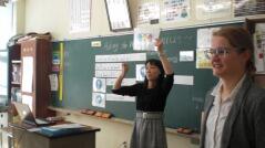 今日の授業では、「right(右)」と「light(灯り)」が出てきて、どちらも発音は「ライト」ですが、「r(アール)」と「l(エル)」の発音の違いを聞き取ることができず、子どもたちだけではなく、参観していた先生方も苦労していました。