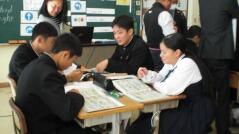 昨日(11月13日、火曜日)、1,2年生は大王谷中学校に交流学習に行き、全校集会から5時間目の授業までを過ごしました。