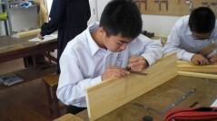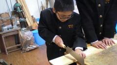 今日は朝からくもり空で、夕方からは雨が降る肌寒い一日でした。1年生の技術の授業では、木材加工について勉強しています。