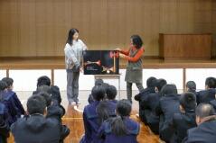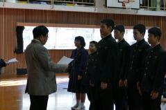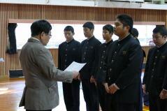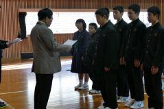 先月行った選挙で新しい生徒会役員が決まりました。今朝は体育館で任命式を行いました。また、任命証を授与する前に、これまで生徒会役員や全校専門委員会の委員長や副委員長を務めてきた生徒に感謝状を渡し労をねぎらいました。