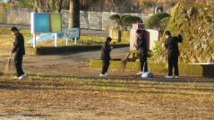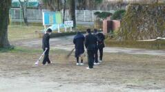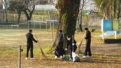 今朝の気温は1℃でした。その寒さの中でも登校した子どもたちは、ほうきで落ち葉を掃いたり除草をしたりしていました。11月末から代わった新役員も準備や呼びかけなどを頑張っています。