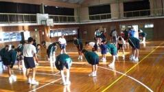 今週も先週に引き続き「チャレンジ体力アップ週間」として帰りの会の後の10分間を全校生徒で走ります。しかし昨日から今日にかけて降っていた雨のために運動場が使えなかったため、体育館の中を10分間走りました。2週目に入り、子どもたちも慣れてきたのか、いつもより速く走っているように見えました。