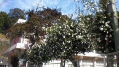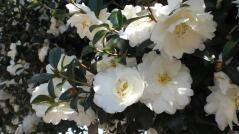 おはようございます。今朝の気温は10℃。先週よりも暖かい朝でした。バスから降りてくる子どもたちの半数はまだ合服でした。学校の側の上井野公民館には山茶花が植えてあり、白い花が開きはじめました。