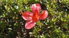 昨日花壇学習を行い、花壇やプランターにはパンジーやノースポールなどの苗が植えてあります(株を大きくするために花弁はとってあります)。学校の近くの山茶花が白い花を咲かせています。近くには、白い花弁の中にピンク色が混じった山茶花もあります。技術室の横にはユリ、西門小学校の玄関前には、季節外れのツツジの花も咲いていました。