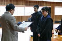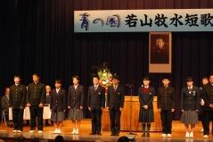 昨日(12月16日(日曜日))、「青の國 若山牧水短歌大会表彰式」が日向市中央公民館でありました。本校の2年生男子が入選(佳作)し、表彰されました。