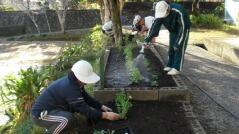 先日の花壇学習で土を耕した花壇やきれいにしたプランターに冬から春にかけて花を咲かせるパンジーなどの寒さに強い花を植えました。今回も「人権の花」運動として門川町が苗の一部を準備していただきました。