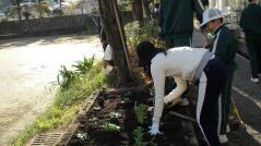 今日は全校生徒と職員で行ったので40分間程度の作業でしたが、大切なのはこれからの水やりや施肥などの管理です。歌壇学習の終わりに、「花に声をかけることで、きれいな花を咲かせる」ということを校長先生が話されました。