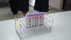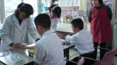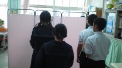 子どもたちは部屋を暖かくした小学校の保健室で、一人ずつ名前を確認後、看護師さんから採血をしていただきました。この検査で自分の体の状態を知ることができます。また、間近で看護師さんの仕事を見ることもできました。