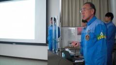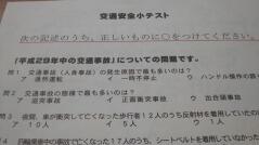 研修では、県内の交通事故の件数やその内容を説明していただき、その後、「危険予測」をしながらの運転を日頃から心がけていくことの大切さやその”技”を学ぶDVDを見ました。最後は「交通安全小テスト」を解き、解説を受けながら交通法規の勉強をしました。