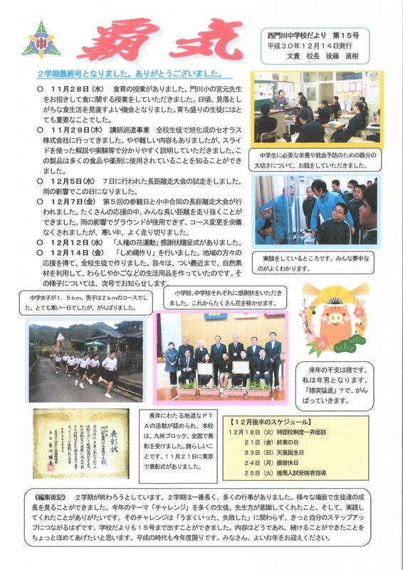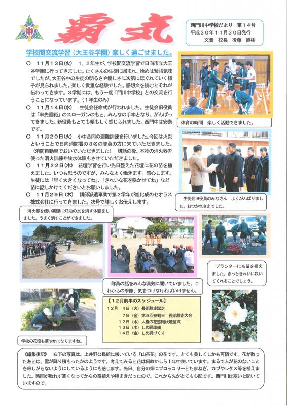本Webページの著作権は、西門川中学校が有します。無断で、文章・画像などの複製・転載を禁じます。