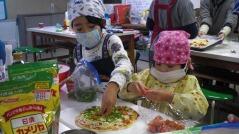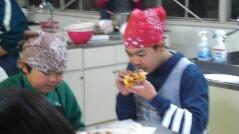 生地は全員同じですが、トッピングは家庭から持参して、お好みのピザになりました。私も食べさせていただきましたが、ふっくらとしていて、とてもおいしいピザでした。