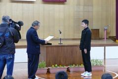 表彰は、門川町読書感想文コンクールや県中学校秋季体育大会、体力テストなどの表彰を行いました。