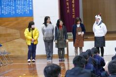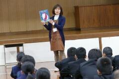 今朝は2学期最後の読み聞かせの日でした。「あおばブックの会」の皆さんが、体育館に全校生徒を集めて聞かせてくださいました。