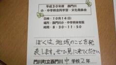 合同運動会が終わりました。早速今日からは10月14日(日)に開催する「西門川小中合同学習・文化発表会」に向けての活動が始まりました。