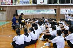 今朝は体育館で全校集会を行いました。