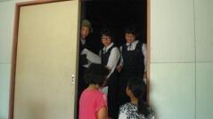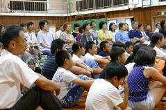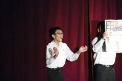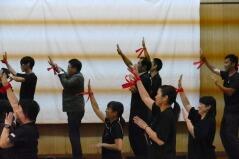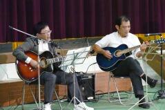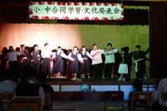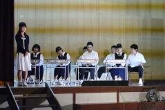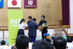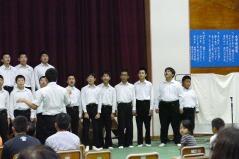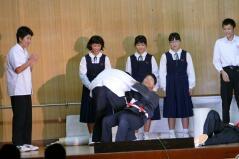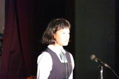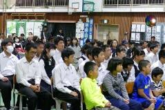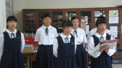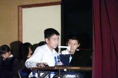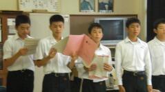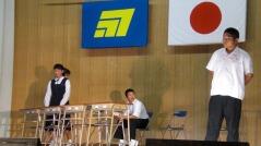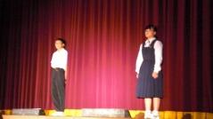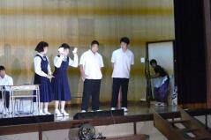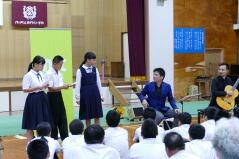 先日からお知らせしていましたプログラムに従い、英語弁論発表や読書感想文の発表、合唱、そして劇を発表しました。小学生、中学生、そして職員も、少ない人数でこれだけの発表をしたことは素晴らしいことだと思います。子どもたちや先生方に感謝します。また今年は小学校と中学校のお二人の校長先生によるフォークデュオや職員によるパフォーマンスも行いました。これも好評でした。