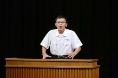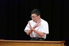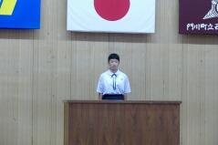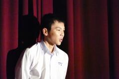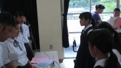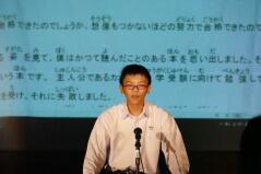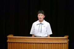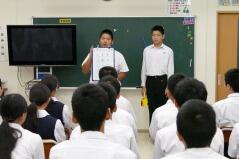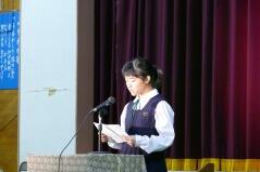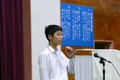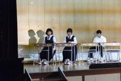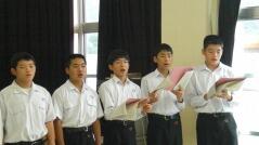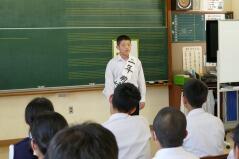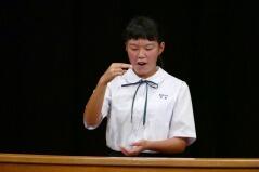 また、推戴式の後で、明日(9月28日(金))開催される「地区中学校英語暗唱・弁論大会」に出場する生徒が、全校生徒の前で発表しました。