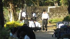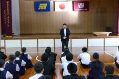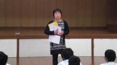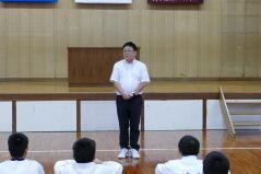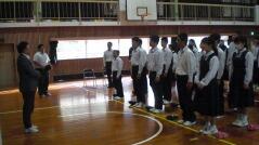 続けて、生徒指導担当の先生が、普段から身だしなみに気をつけることが大切であることを話されました。また、夕暮れが早くなっているので、下校時の安全や不審者のことなども話されました。