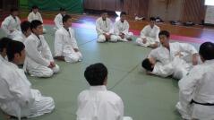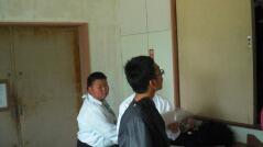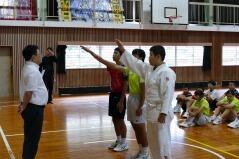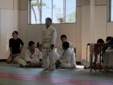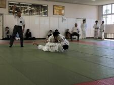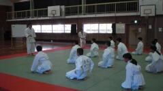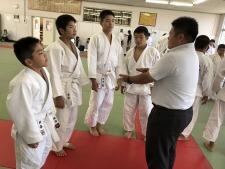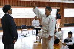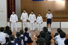 体育授業では男女とも柔道を行っています。いつもは体育の先生が一人で指導していますが、今日は校長先生も一緒に汗を流していらっしゃいました。みんなで楽しそうに固め技を練習していました。