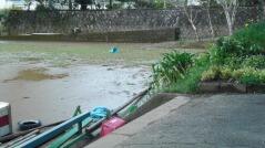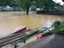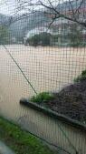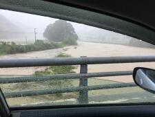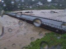 写真は昨日の台風で増水した五十鈴川や冠水した運動場と今朝のようすです。