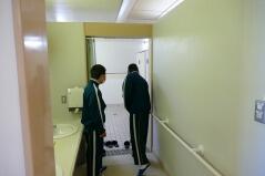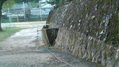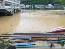 本校は数年に一度浸水被害を経験しています。最近の被害は、2年前の9月に職員室の床上80cm浸水しました。また、過去には1m80cm程度の浸水も記録し、そのときには国道沿いの住宅も浸水し、被害も大きかったそうです。