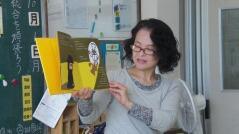 2年生の教室では読み聞かせをしていただきました。今日は「オレ、カエルやめるや」と「おたからパンや」という絵本でした。「おたからはパンや」は、”おたから”は自分の身近にあったというかわいいお話でした。