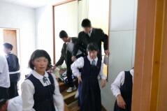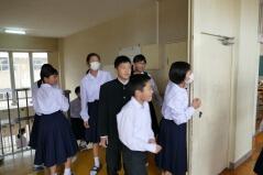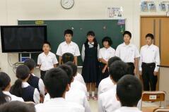 西門川中はこの1年生が2年生を修了すると同時に閉校になるため、3年生に進級したら毎日門川中学校に通学し、授業を受けることになります。この子どもたちは、全員が特認校制度を利用して西門川中学校に入学しているので、自宅からは近くなります。また、小学生の時に一緒に過ごした同級生もいます。しかし、「大人数」での授業や活動等に不安もあることを考え、交流学習を計画しました。3学期には終日、門川中学校で過ごし、給食も一緒に食べます。