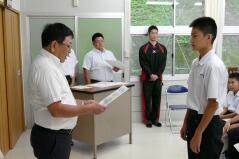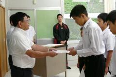最後は、先日開催された地区英語暗唱・弁論大会と中学校秋季体育大会で入賞した生徒の表彰を行いました。