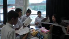 授業はいつも行っている発声練習から始まり、自分たちで歌うときに気をつけるところを確認した後で、パート練習を行いました。