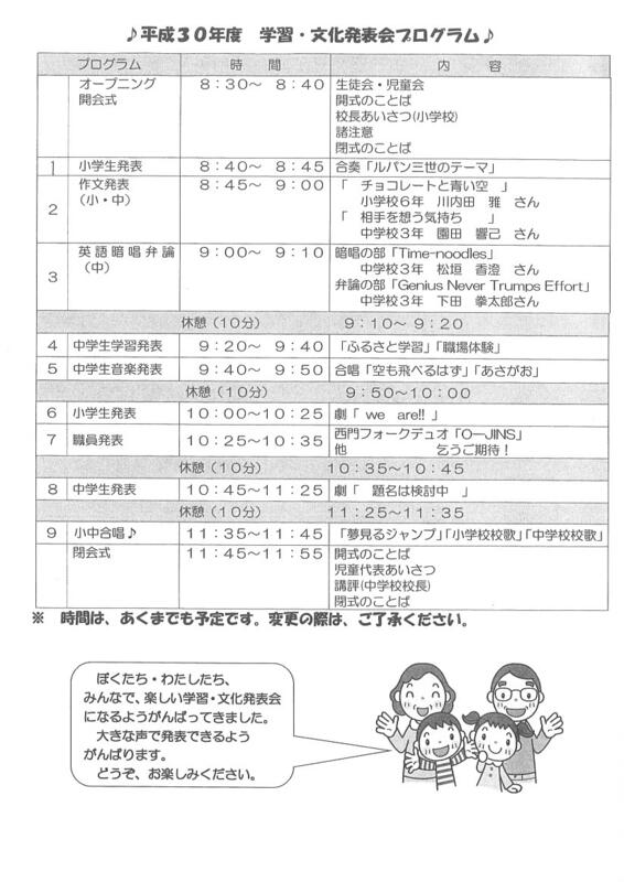 小中合同学習・文化発表会プログラム