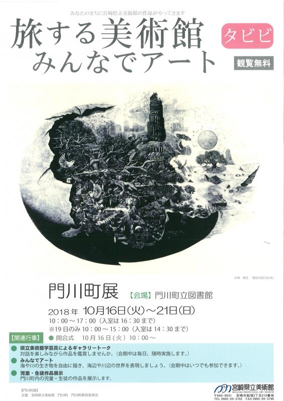 「旅する美術館 門川展」は、10月21日(日曜日)までです。間近で本物の作品を見ることができます(県立美術館の作品は20点程度展示してあります。)。門川町内の小中学生の作品も展示してあります。観覧は無料です。