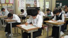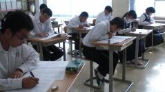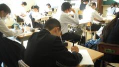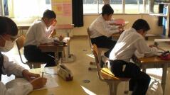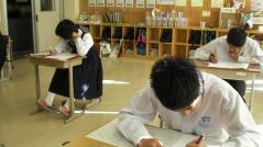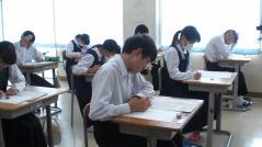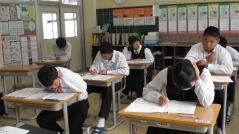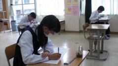 西門川中学校では、学力コンテストを定期的に実施しています。今日はそのプレテストを行い、1年生は数学、2年生は英語、3年生は国語のテストを受けました。来週の「チャレンジ学力アップ週間」にはそれぞれの教科のテスト範囲を勉強し、本番のテスト(学力コンテスト)を受けます。