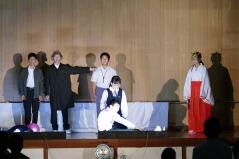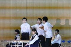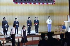 劇は40分間の大作で、脚本や衣装、そして大道具・小道具などすべて子どもたちや職員による手作りでした。脚本は数学の先生のオリジナル作品で、今回で5年目になります。劇の後半の主人公である女子中学生の台詞で「私は西門川中学校で来て良かった」というものがありました。子どもたちが本校を卒業していくときに、そして大人になったときにそう思えるような教育を私たちもしていかないと行けないと思います。