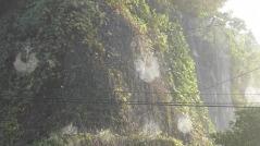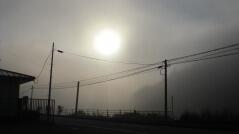 今日も肌寒さを感じる朝でした。子どもたちが登校する前は川霧が出ていました。電線の蜘蛛の巣に朝露が付き、はっきりと見えていました。
