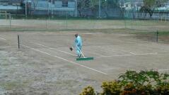 子どもたちのことを考えての作業、ありがとうございました。今日の午後は作業ではがれてしまったラインテープの補修もしてくださいました。放課後は早速テニス部の生徒が練習をすることができました。