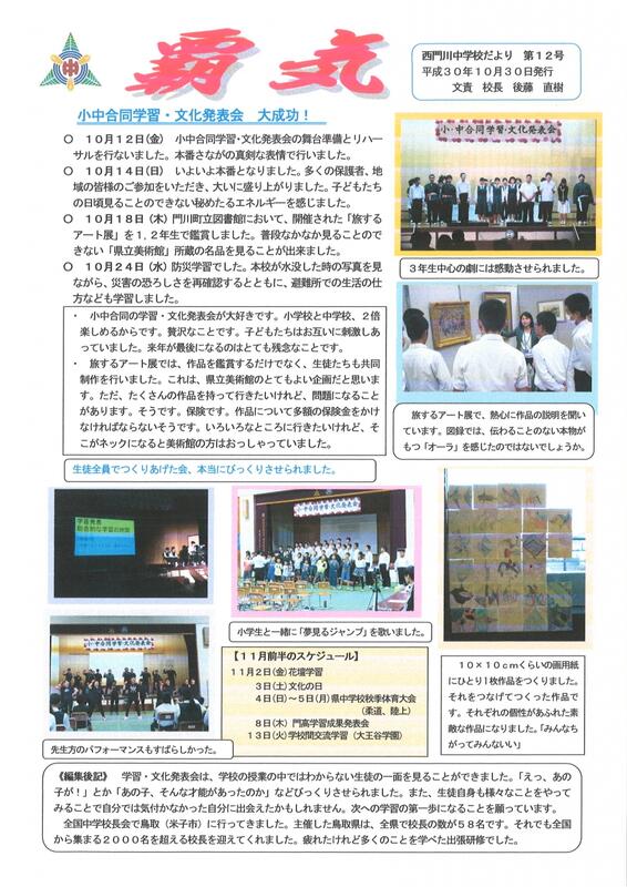 本Webページの著作権は、西門川中学校が有します。無断で、文章・画像などの複製・転載を禁じます。