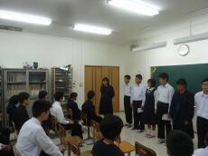 今朝の全校集会は、数学担当の吉田先生の話と表彰を行いました。