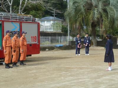 3校時に、小中合同の火災を想定した避難訓練を行いました。