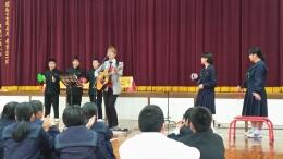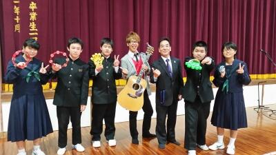 昨日の6校時に「鑑賞教室Ⅱ」を実施しました。西諸県(高原町)出身、現在東京を拠点にシンガーソングライターとして活躍している 大野勇太さんに来ていただき、