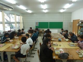本校は親子給食方式で、五十鈴小学校の給食調理場でつくっていただき本校に運ばれてきます。